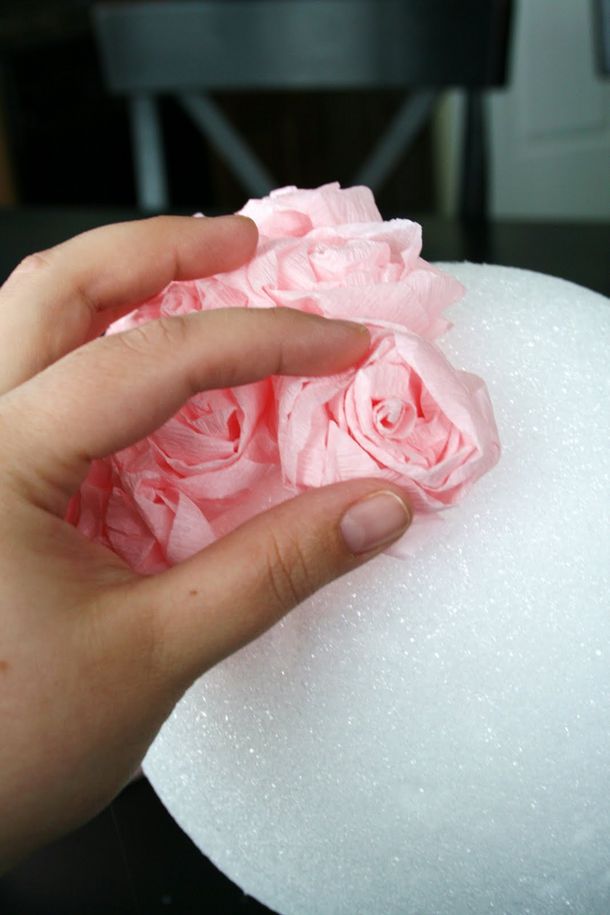Quando você tiver várias rosas prontas, já poderá começar o processo de colagem na bola de isopor.