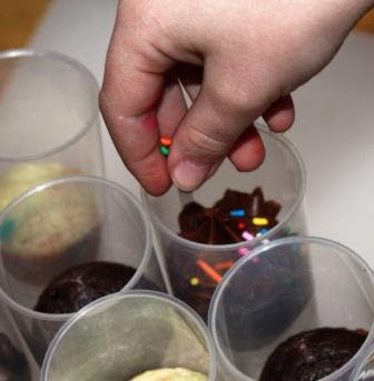 A foto abaixo mostra como são os potinhos, que você pode encontrar em loja de artigos para festas!