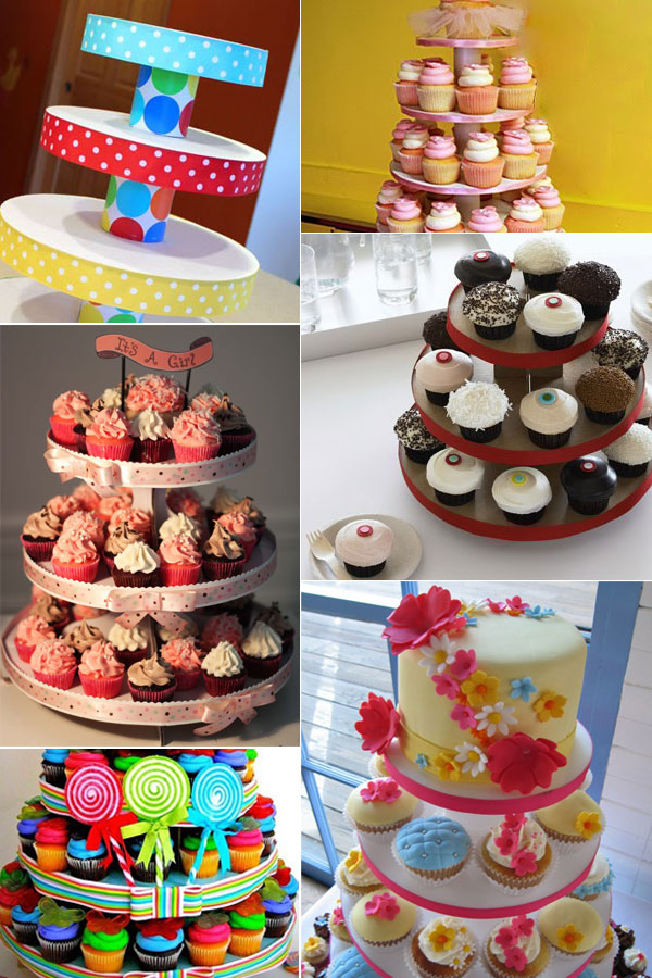 Vai ficar uma gracinha. Além de cupcakes você pode colocar doces variados, salgados, biscuits ou o que você imaginar. Coloque a criatividade para trabalhar e crie lindas torres para enfeitar sua festa.